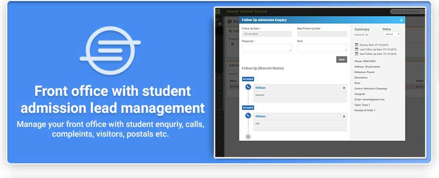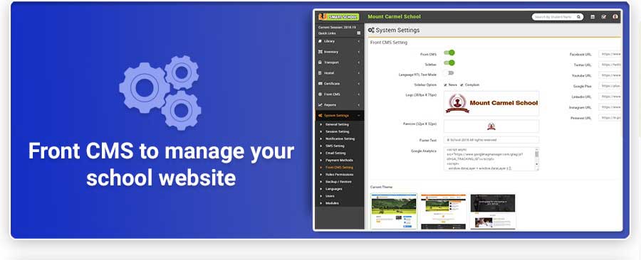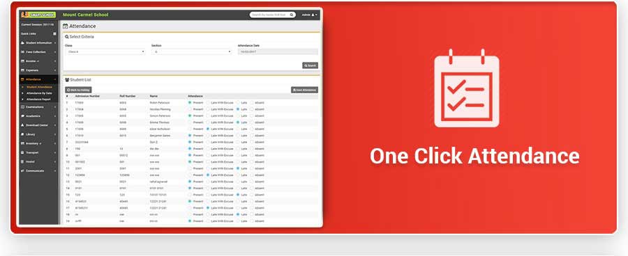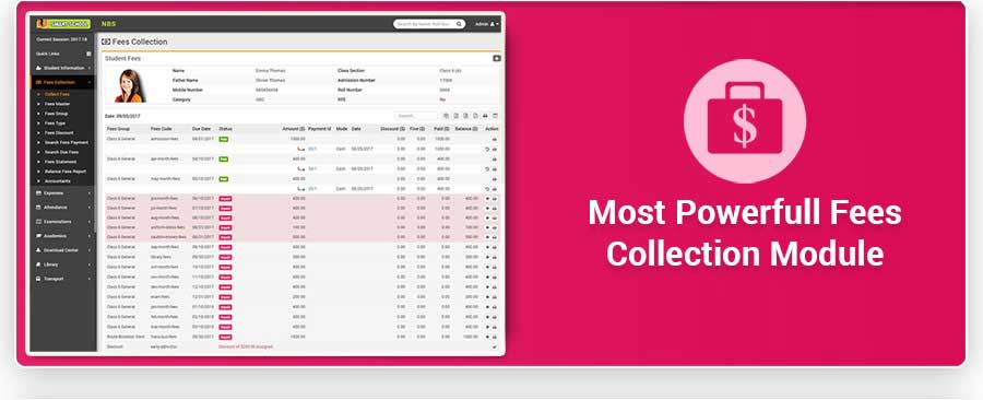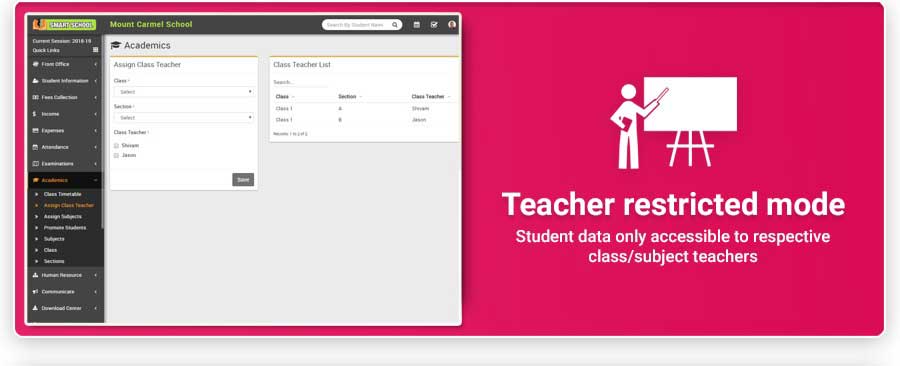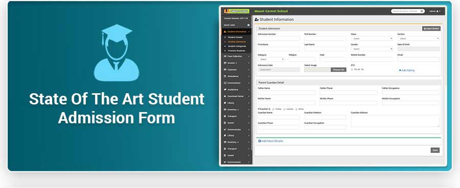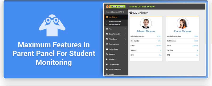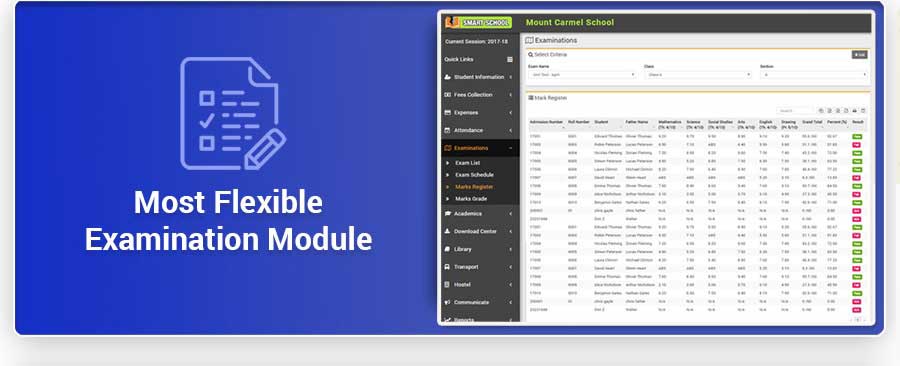 Smart School is Modern and Complete School Automation Software that suites to almost every school or educational institution from student admission to student leaving, from fees collection to exam results. It includes 40+ modules with 8 inbuilt users (Super Admin, Admin, Accountant, Teacher, Receptionist, Librarian, Parent and Student) panel.